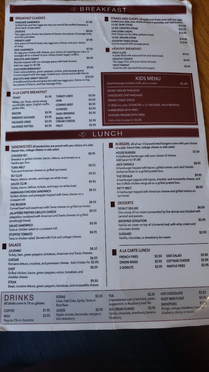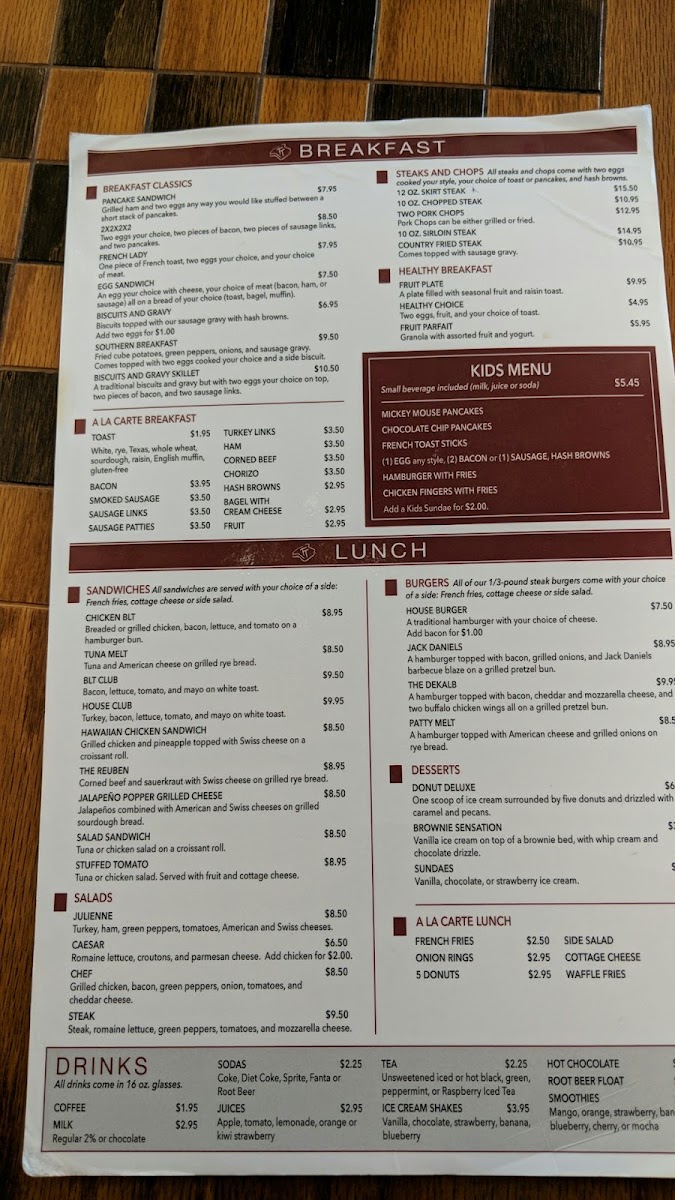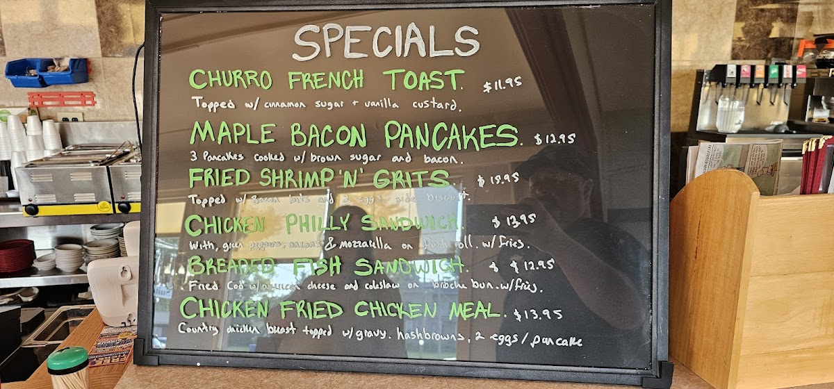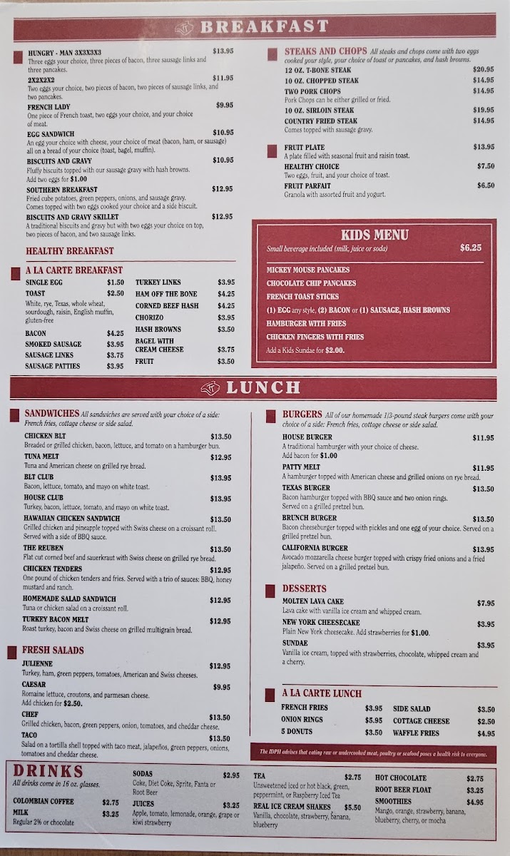 Served with hash browns and toast or pancakes. Add ham or bacon or substitute french toast for an additional price.